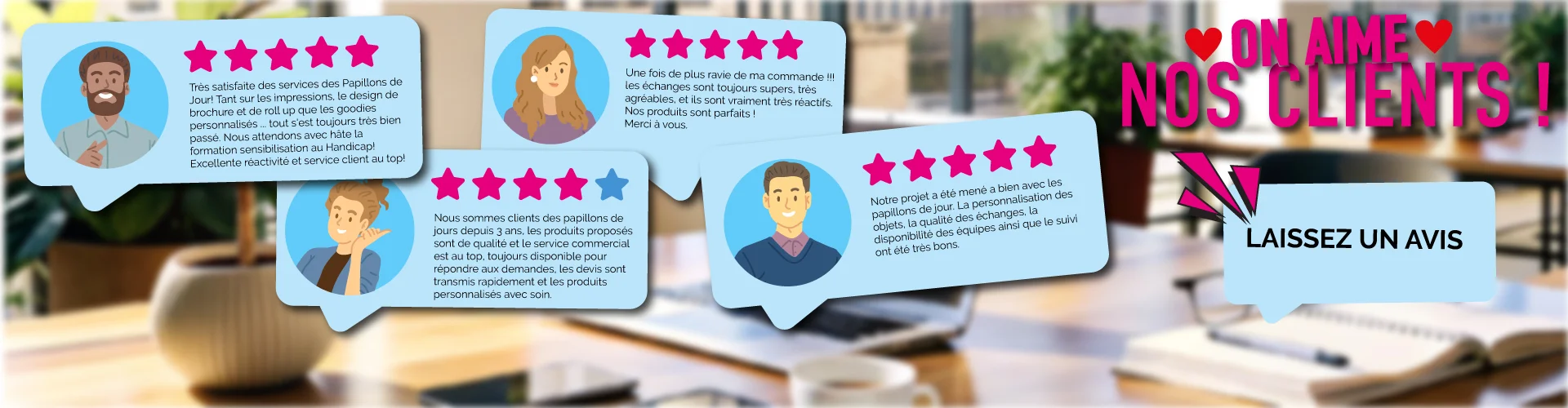 Je suis ravie de vous présenter notre nouvelle boutique, où innovation et responsabilité se rencontrent pour redéfinir les achats professionnels. Forts de plus de 10 ans d’expérience, chez Les Papillons de Jour, nous avons toujours cru que les choix commerciaux peuvent et doivent être une force de changement positif.
