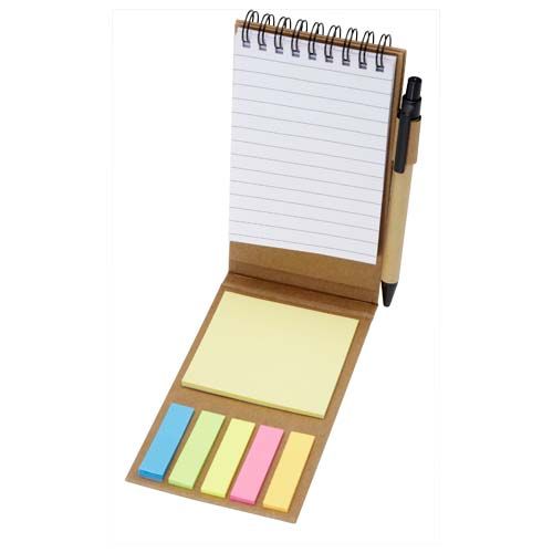 Bloc-notes autocollant avec stylo bille. Le bloc-notes comporte 30 feuilles de papier blanc ligné de 70 g/m2 (8 x 12 cm). Il contient également 25 notes autocollantes multicolores (5 x 1,2 cm) et 25 notes autocollantes jaunes (7,5 x 7,5 cm), toutes deux en papier de 70 g/m2. Le corps du stylo bille est en papier recyclé. Couleur de l'encre : Noire. Longueur d'écriture : 1000 mètres. Taille de la plume : 1,00 mm. Matières : Papier certifié FSC Certificats :FSC®, BSCI Option d'impression par défaut : Tampographie - Devant - couleurs max : 4 - 55 x 55 mm Pour ce produit, le fournisseur a rempli tout ou partie des données GPSR. Pour plus d'informations, veuillez-vous rapprocher du fournisseur.
