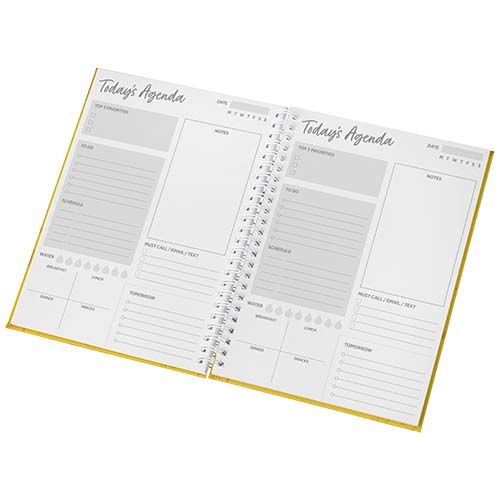 Le journal à couverture rigide Desk-Mate® A5 avec papier 80 g/m2 est un compagnon pour toutes vos pensées, notes et idées. Le format compact A5 est parfait pour l'écriture en déplacement ou la tenue d'un journal quotidien. Idéal pour les étudiants, les professionnels ou toute personne à la recherche d'un espace fiable où puiser l'inspiration. Les modèles de journaux sont disponibles en anglais, français, allemand, espagnol, italien, polonais et néerlandais. Ce produit est certifié FSC® (C166462). Matières : Papier certifié FSC, Nylon Option d'impression par défaut : Impression papier - Devant - couleurs max : 4 - 154 x 215 mm Pour ce produit, le fournisseur a rempli tout ou partie des données GPSR. Pour plus d'informations, veuillez-vous rapprocher du fournisseur.