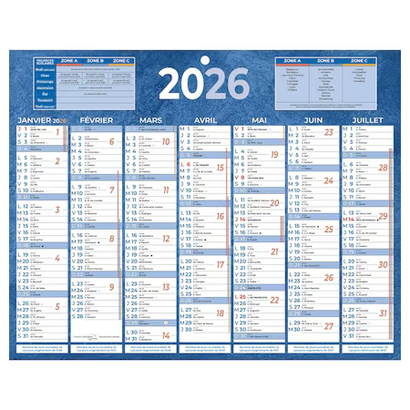 Calendrier 21×26.5cm 7 Mois RECTO/VERSO (Bleu – Rouge)