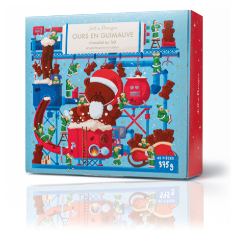 Noël – La boite ours en guimauve 375g – 40 ours guimauve enrobés de chocolat au lait