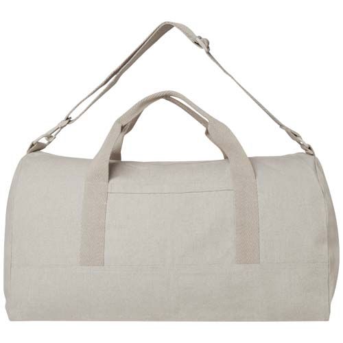 Le sac de voyage Porter en coton et polyester recyclés de 500 g/m² est doté d’un compartiment principal spacieux pour un rangement optimal des objets de grande taille, ainsi que d’une petite poche frontale pour ranger les petits objets tels que le passeport ou le téléphone. Le sac peut être porté à l’aide des deux poignées courtes ou de la bandoulière extensible et amovible, qui peut être ajustée pour un maximum de confort. Le sac de voyage incorpore la technologie Cyclo® qui utilise des déchets pré-triés déterminant la couleur du fil. Ces fibres ne se contentent pas de réduire la demande en ressources vierges, elles témoignent également d'un engagement en faveur d'une vie circulaire, incarnant l'essence même de la réduction des déchets et de la promotion d'un système en boucle fermée. Chaque sac est également accompagné d'un traceur Aware™. Cette fonction innovante permet aux utilisateurs de retracer l'origine et le parcours de leur article au moyen d'un QR code, ce qui accroît la transparence de la chaîne d'approvisionnement et favorise un lien plus étroit entre le produit et son processus de production. Capacité : 50 litres. En savoir plus sur les tissus non teints et la technologie Aware. Matières : 70% Coton recyclé et 30% Polyester recyclé, 500 g/m2 Option d'impression par défaut : Broderie fixe - A l'arrière - couleurs max : 5 - 60 x 60 mm Pour ce produit, le fournisseur a rempli tout ou partie des données GPSR. Pour plus d'informations, veuillez-vous rapprocher du fournisseur.